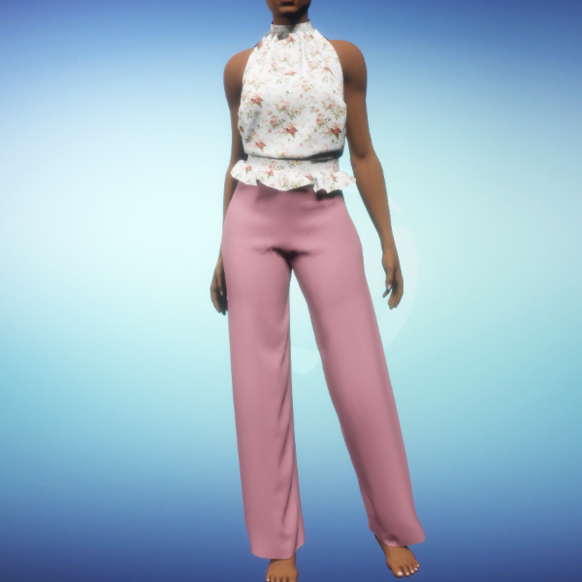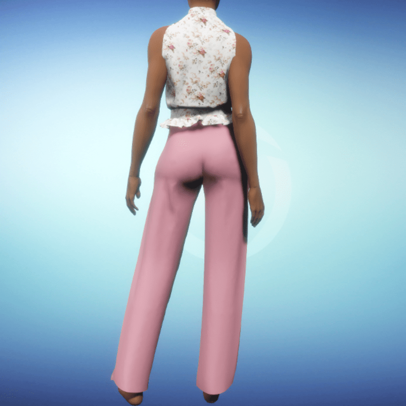 Classy spring 2-piece outfit. The blouse features a flower print with a slight sheen while the wide pants feature a matte polyester material. The blouse and pants cannot be worn separately. By Sweet Distractions