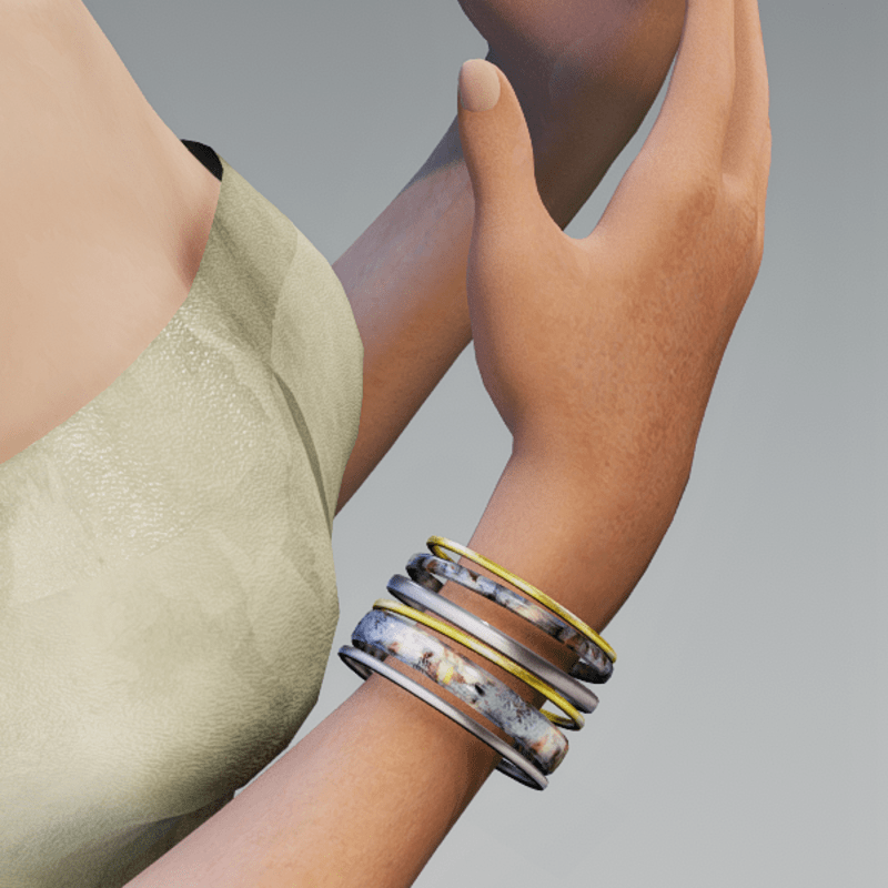 Holiday bangles. Right arm accessory and can be resized and moved some as needed using the TRANSFORM tool.