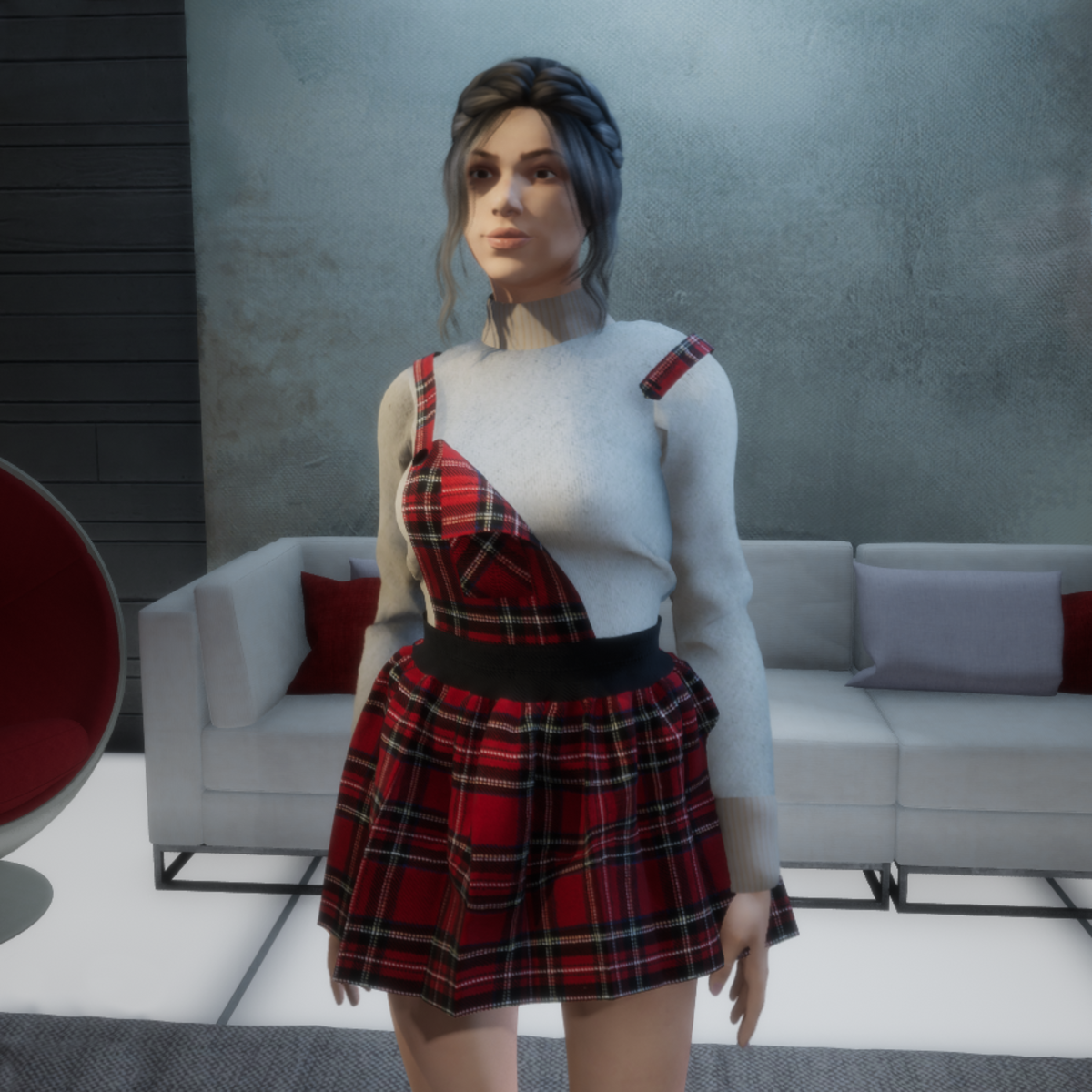 Mini dress in scottish wool fabric RED