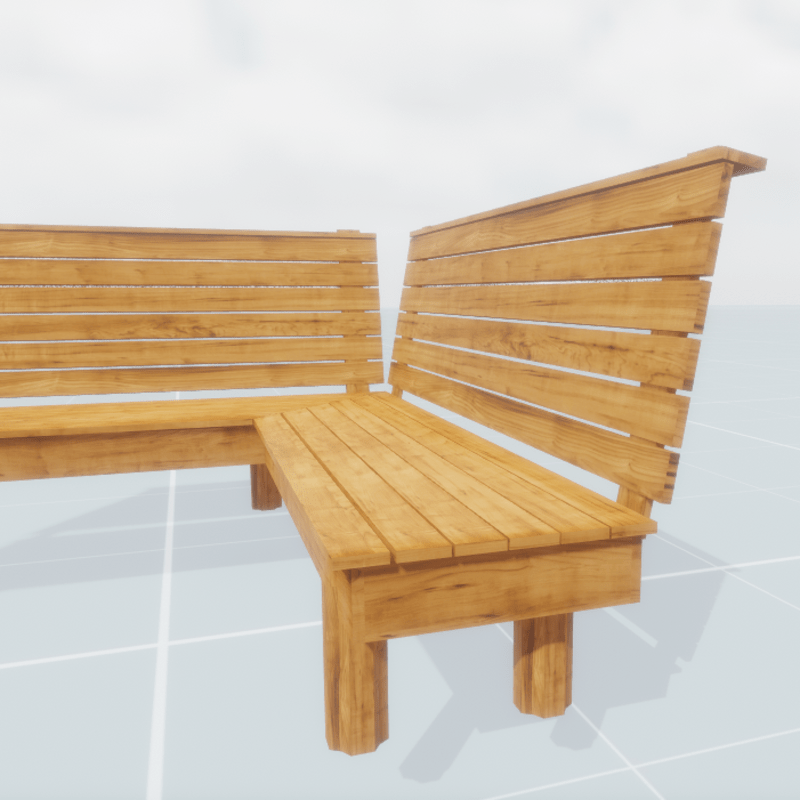 An park wooden bench in L shape
