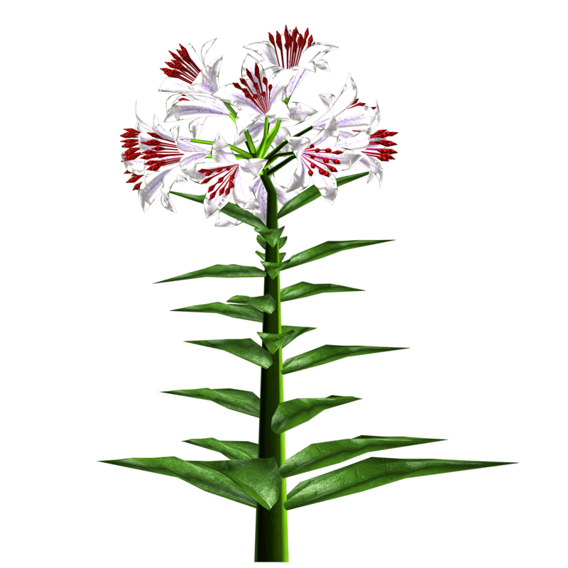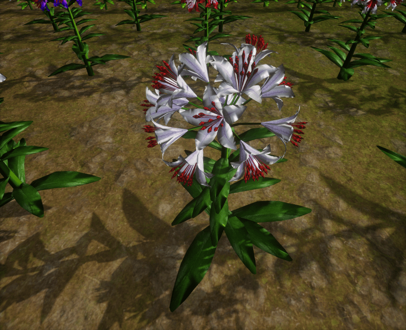 1 Trumpet Lily Plant with about 14 blooming lily flowers and several leaves for your lovely gardens. Polygon count: 15480. There is no collision on this mesh so you can walk through it. I have many colors. To see this flower in Atlas, please visit "LovedWarrior's Ground Plants: https://atlas.sansar.com/experiences/lovedwarrior/lovedwarrior-s-ground-plants" Please note that all my flowers are 100% detailed mesh. Each petal, pollen, stalk and leaf is made by hand and placed by hand. All the textures are also made by me. If you have any flower or plant requests, show me a picture of the flower and I will let you know if I can make it for you. Enjoy!