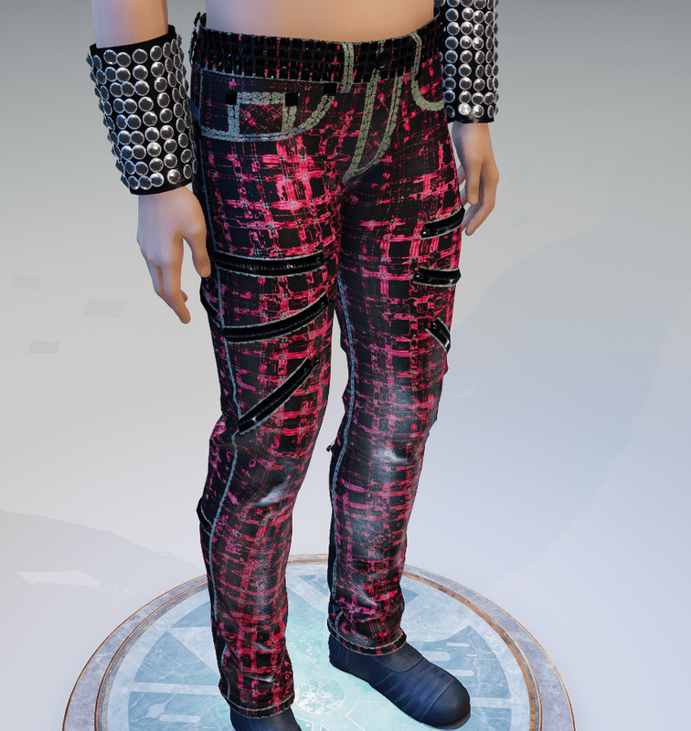 - Punk Rock Chaos Red-Bloody Dark-Disruptor Plaid Jeans - Male