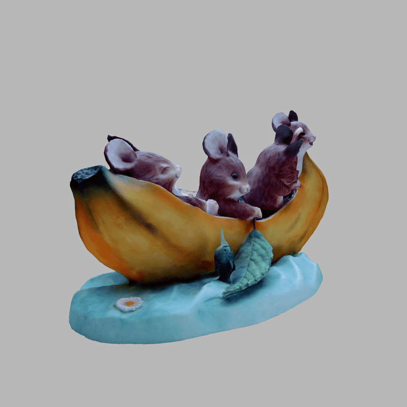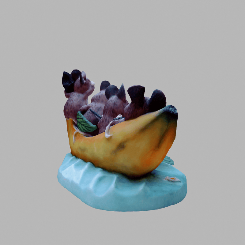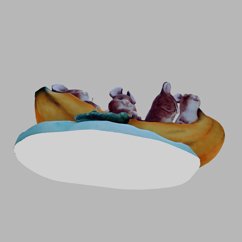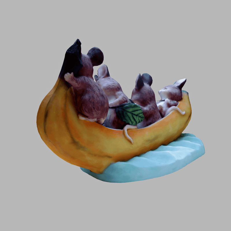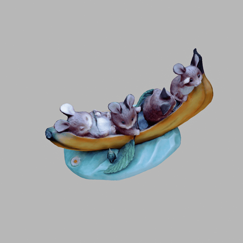 Four hamster friends (or dormice - can't decide) are taking a fishing trip together in their banana boat. Awwww! A delightful piece that is guaranteed to bring a smile to your face. If you like cute, you're sure to love this. Custom paint. Collision built-in. Includes diffuse, normal and roughness maps. View the item in-world at: https://atlas.sansar.com/experiences/fiddybux-2071/fiddyland-base