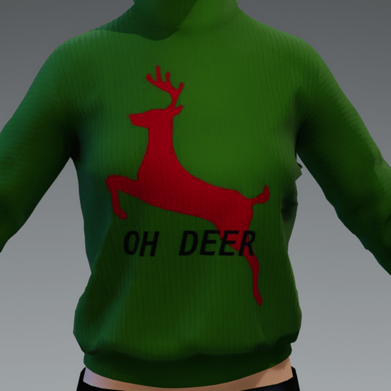 Oh Deer Green Turtleneck Knit Sweater. Made in Marvelous Designer, so you can adjust it to fit your avatar. To try on the fit before you buy, check out the Free version here: https://store.sansar.com/listings/a9021473-6ae2-4b2d-bb96-bdb7cbe9a152/let--it-snow-turtleneck-sweater
