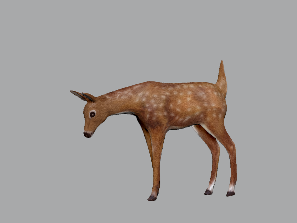Fawn Deer peering forward, at a flower? Bunny rabbit? It's up to you. No collision mesh. Original Artwork 5k poly Texture 1024 x 1024