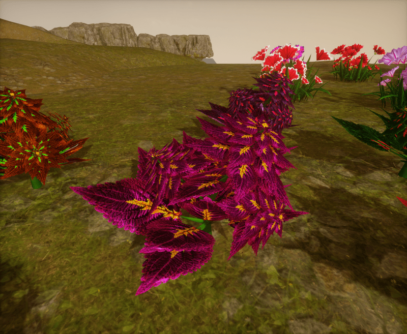 I always loved Coleus plants. I love all the colors of those gorgeous leaves. So, you will find many colors of coleus plants from me. There is no collision on this mesh so you can walk through it. To see it in Atlas, please visit "LovedWarrior's Ground Plants: https://atlas.sansar.com/experiences/lovedwarrior/lovedwarrior-s-ground-plants" Each petal, pollen, stalk and leaf is made by hand and placed by hand. All the textures are also made by me. Enjoy!