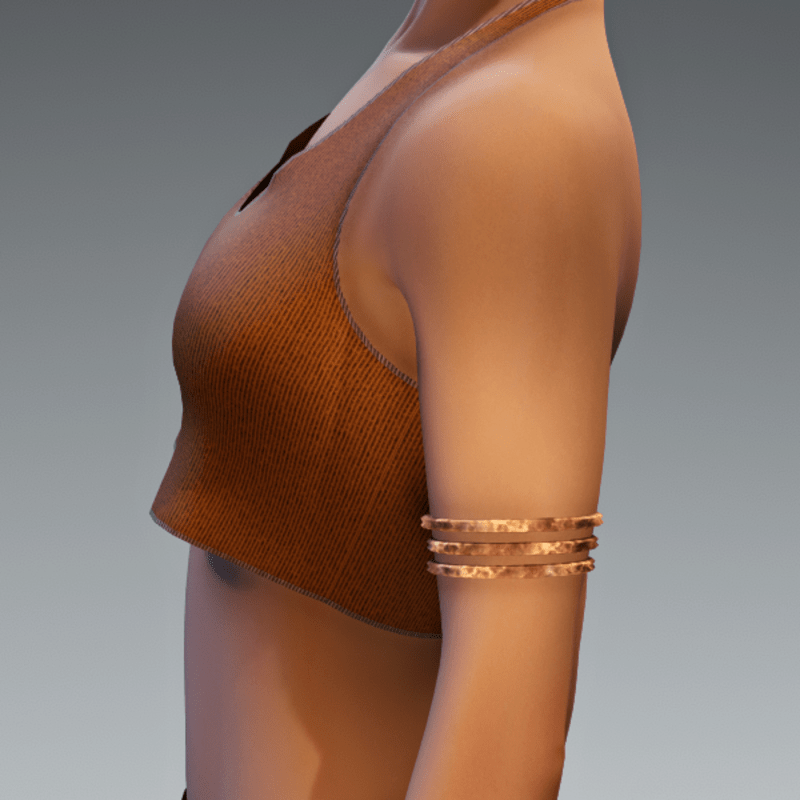Three band armlet that fits on the left upper arm. This is a rigged item and will show up under CLOTHING in your inventory. Fits female Avatar 2.0.