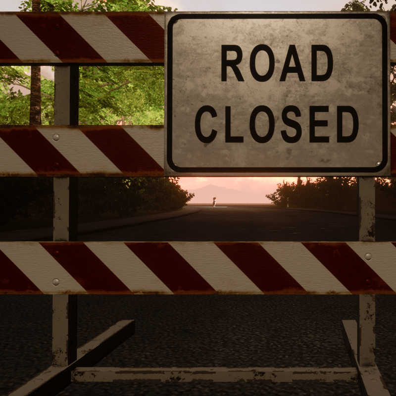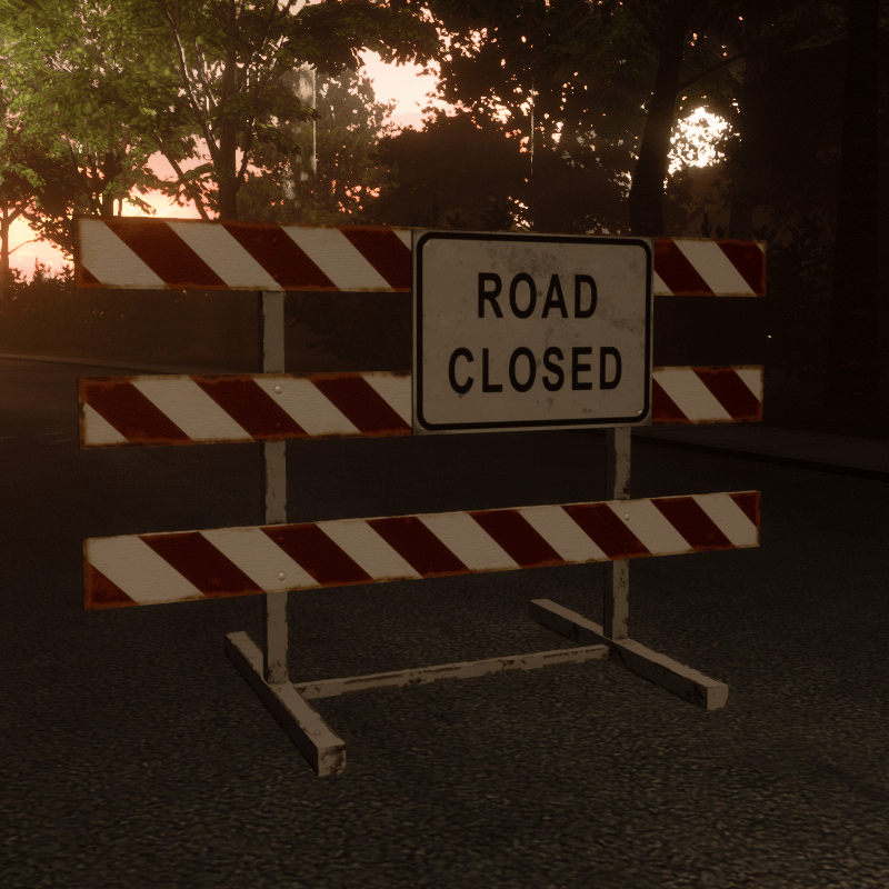 As seen in 114 Harvest experience. Old, distressed road closed fence sign. You can check out the road closed sign at the following link https://atlas.sansar.com/experiences/draxtor/114-harvest
