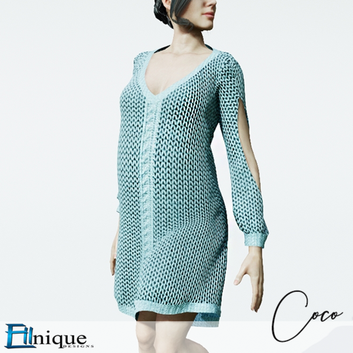 Coco Teal Sweater dress cutout arms