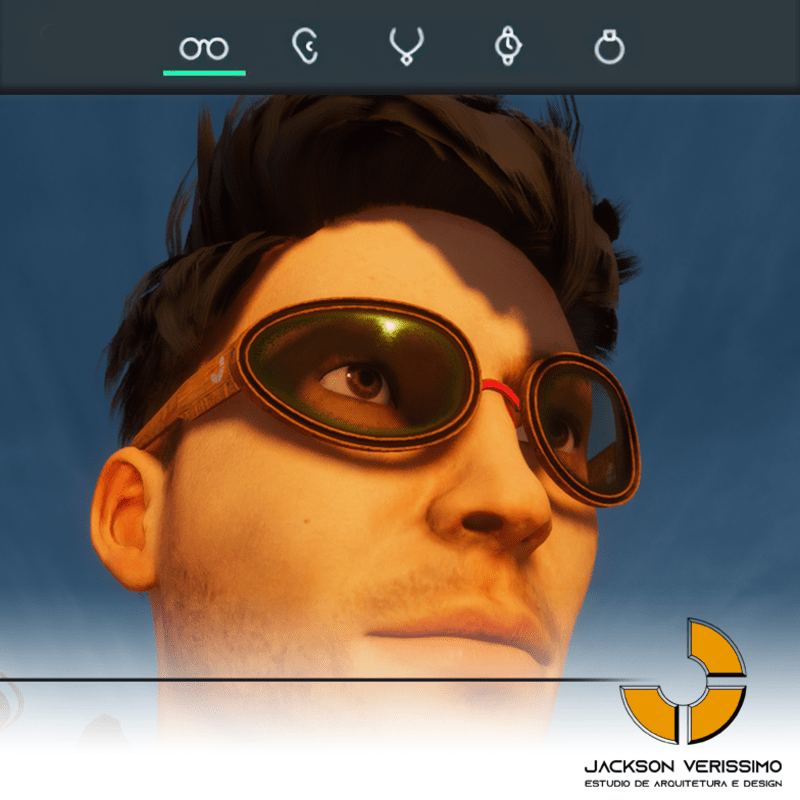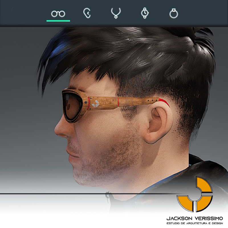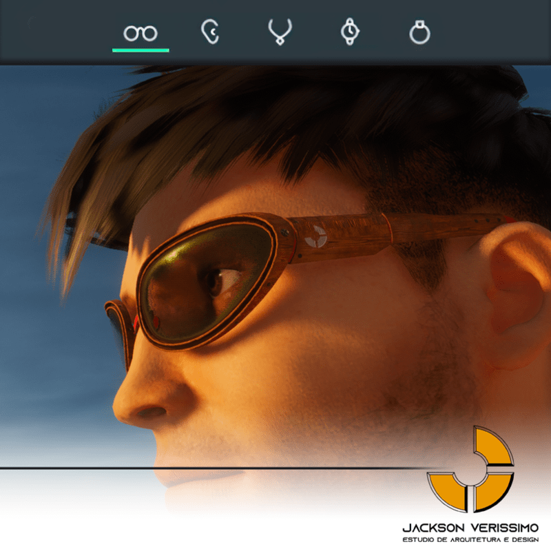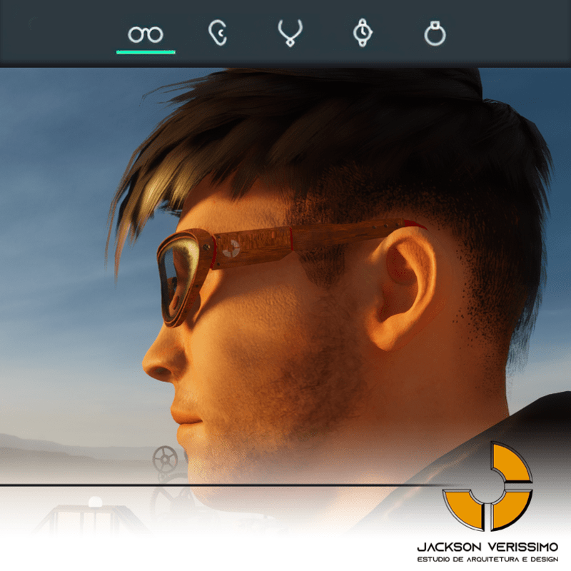 Special design for sunglasses of Wood. Original by JackVerissimo. Transparent and Metalic Lens. Frame of Wood with color detail. Special PBR textures. Unisex. Match with all humaniods avatars. Sometimes you will need a easy adjustments to fit.