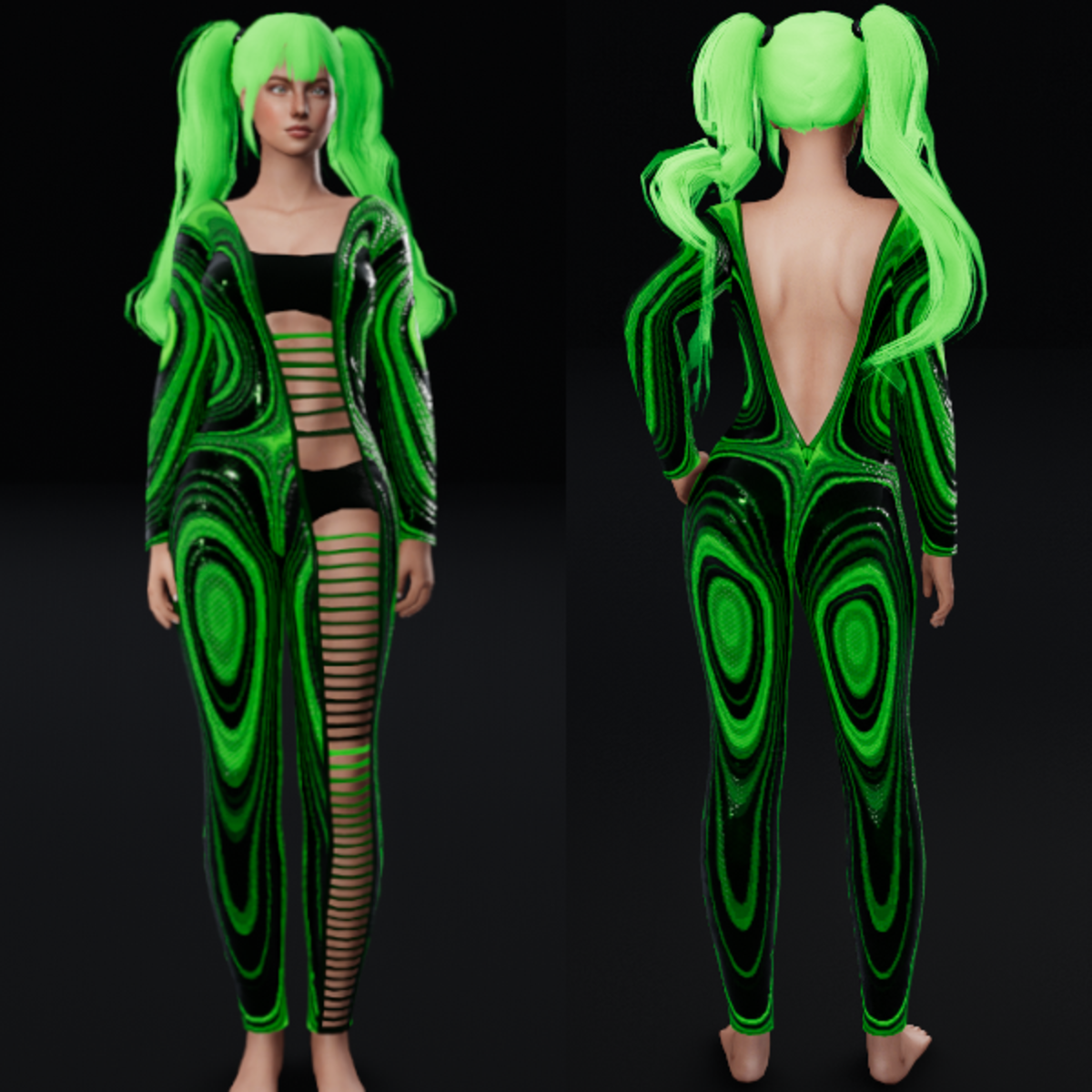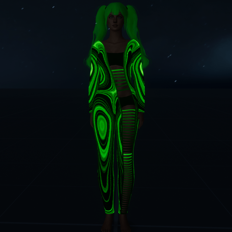Emissive Body Suit with cut out on the front. Be seen in a dark nightclub with this futuristic bodysuit. Get Demo Here: https://store.sansar.com/listings/3ece415b-6831-48b5-948c-ea32dd6192e5/demo---bodysuit-with-ripped-front---demo Trying on the available Demo is the best way to assure your satisfaction with quality and fit. The lighting isn't the best in the lookbook and the shoulders seem to fit funny in the lookbook as well, so I recommend wearing the demo in world to see how it truly looks on you. Visit my inworld store experience to find discounted items that or not available on the marketplace. https://atlas.sansar.com/experiences/lonaleelancaster/lona Made in Marvelous Designer and can be adjusted to fit most avatars. Please try a demo to assure fit and satisfaction. To learn more about transforming and adjusting Marvelous Designer clothing visit this link: https://help.sansar.com/hc/en-us/articles/115005693363-Fitting-Marvelous-Designer-clothing-to-your-avatar#some-tips