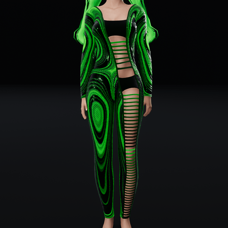 Emissive Bodysuit with Ripped Front - Green