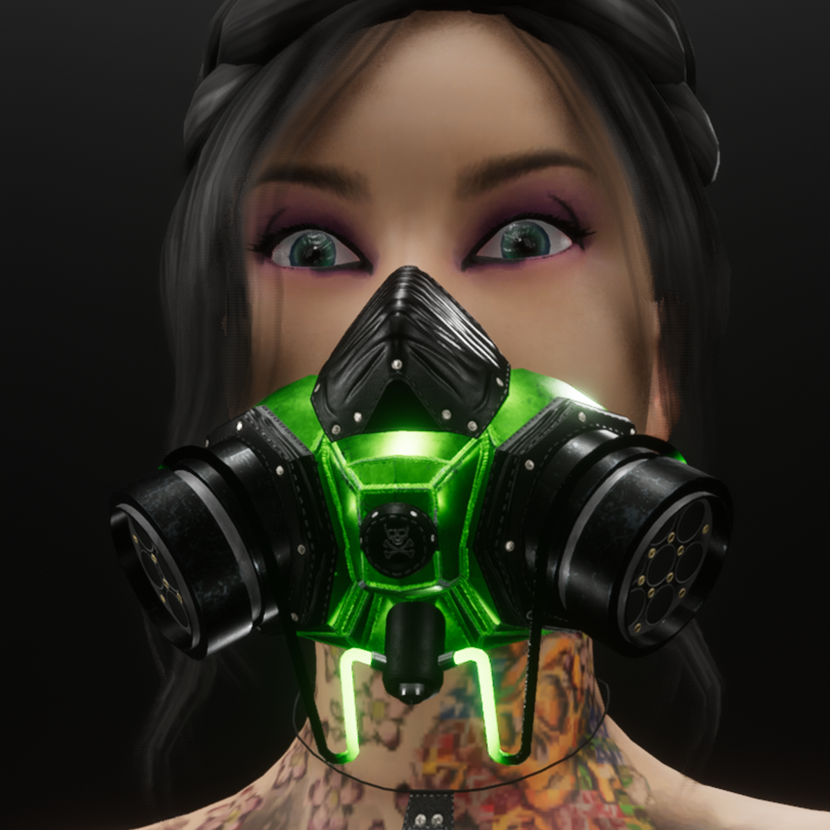 Green gas mask, tubes are animated and glowing, CAN BE RESIZED TO FIT ALL AVATARS.