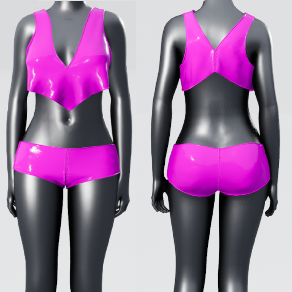 Plastic Shorts and Top Set. Check my store for the matching High Waist Fringe Skirt or check out the emissive version. Get Demo Here: DEMO is not emissive, is only to check fit. https://store.sansar.com/listings/11afd45a-2d53-43b3-8ddd-fec79db88057/plastic--shorts-and-top-set---demo Trying on the available Demo is the best way to assure your satisfaction with quality and fit. The lighting isn't the best in the lookbook and the shoulders seem to fit funny in the lookbook as well, so I recommend wearing the demo in world to see how it truly looks on you. Visit my inworld store experience to find discounted items that or not available on the marketplace and also look for miniature butterflies to find free mystery gifts! https://atlas.sansar.com/experiences/lonaleelancaster/lona Made in Marvelous Designer and can be adjusted to fit most avatars. Please try a demo to assure fit and satisfaction. To learn more about transforming and adjusting Marvelous Designer clothing visit this link: https://help.sansar.com/hc/en-us/articles/115005693363-Fitting-Marvelous-Designer-clothing-to-your-avatar#some-tips