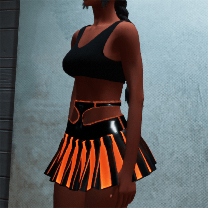 A sassy short pleated skirt in Halloween colors with emissive trimmings. Designed in Marvelous Designer by B.Rene Gade Fashions and Accessories.
