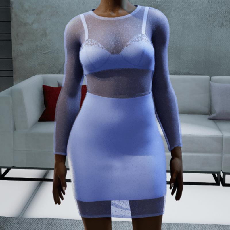 Sheer Dress with under it a laced bra and mini skirt. This design is created with marvelous designer and the texture is manually adjusted to give it more depth and true alpha. If you need a specific color, please do not hesitate and contact me! If you like this design, do not forget to rate it!