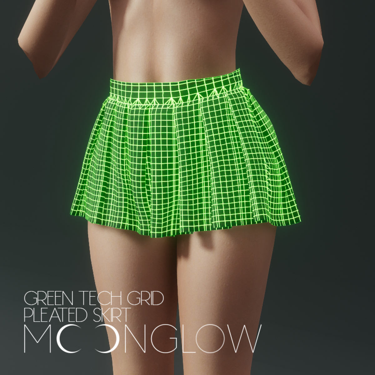 A black and green glowing tech patterned skirt. Moonglow Store: https://store.sansar.com/store/Moonglow-0352