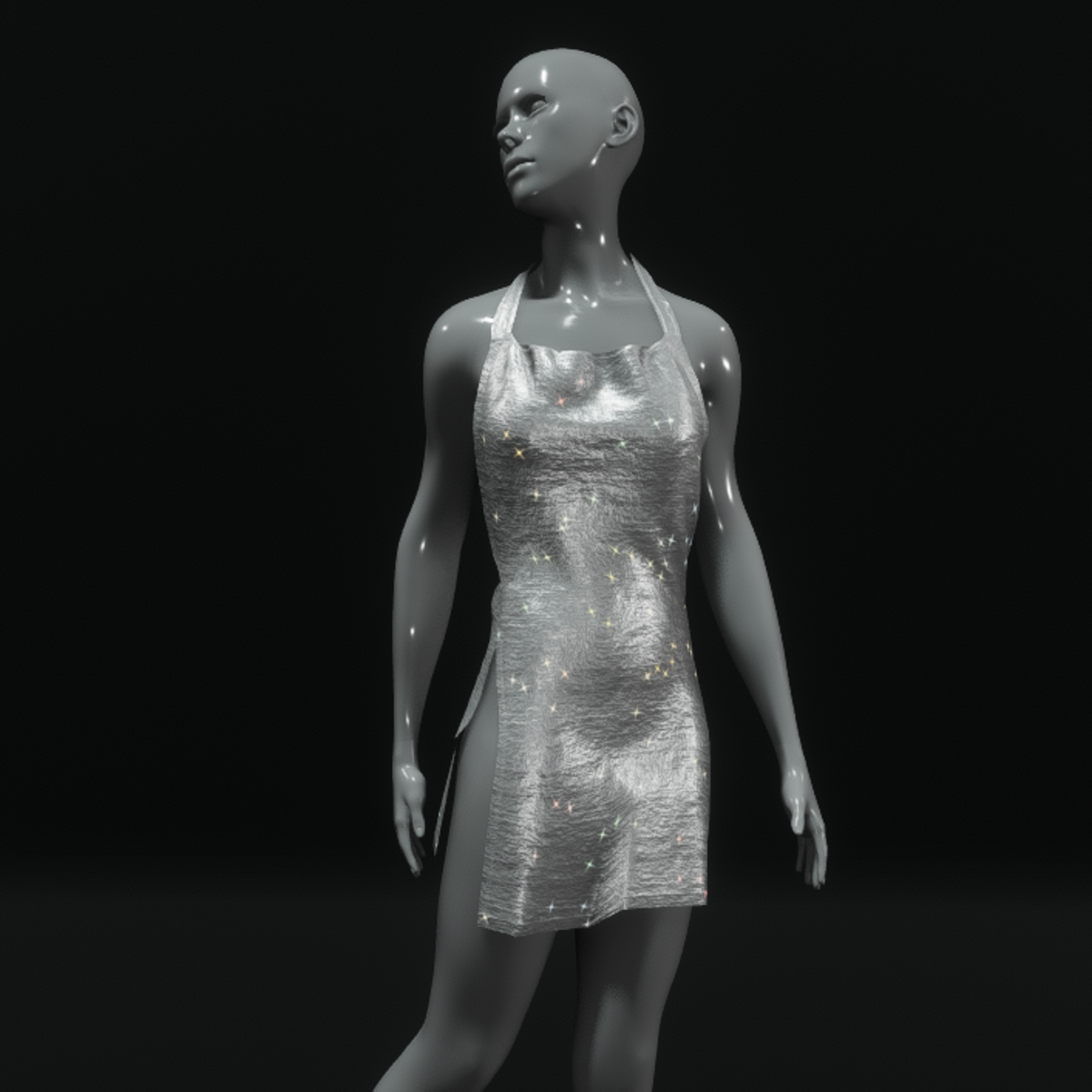 A small, sexy, glossy halter dress in white color with sparkling effect. It has an open back and high openings on both sides. Get the demo item before purchasing to check style and fitting, here:https://store.sansar.com/listings/9a75c063-3ecd-4402-a5d8-daf72c599ed8/small-sparkling-club-dress---demo