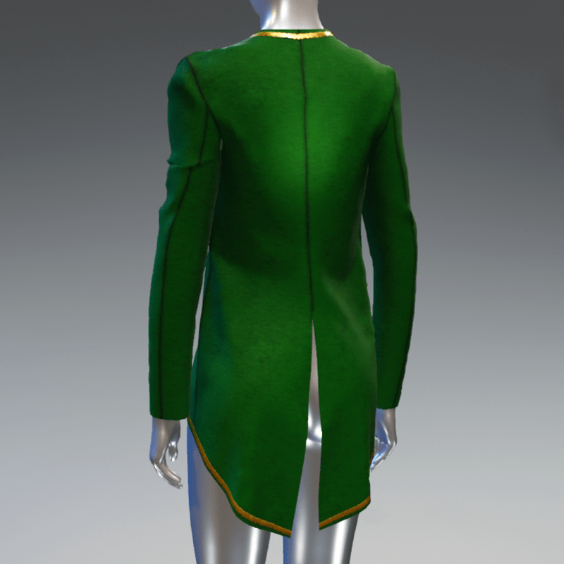 A green blazer for elf or any other holiday costume. Long sleeved, fastens with a zipper that can be unfasten and decorated with a gold stripe. Get the free demo before purchase here: https://store.sansar.com/listings/e6567783-a3f3-4d52-94f4-e5c7228b916b/elf-blazer---demo