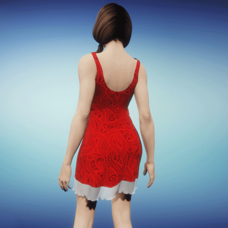 Modern summerdress with semi transparent parts! Please simulate the clothes before wearing to adjust it optimally.