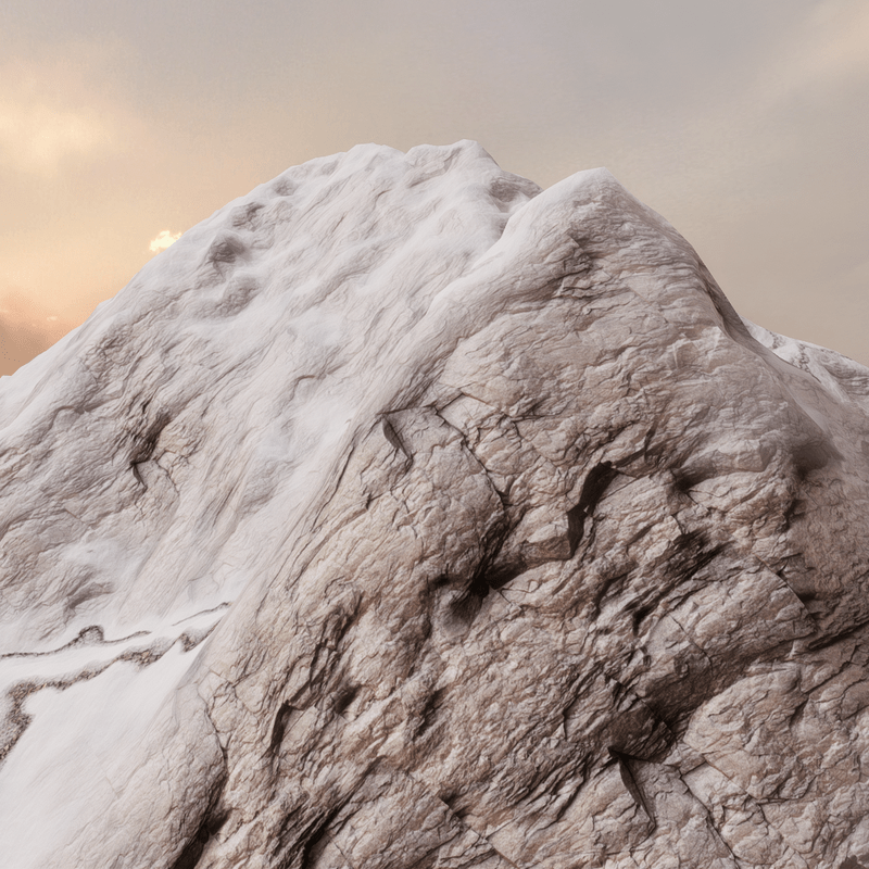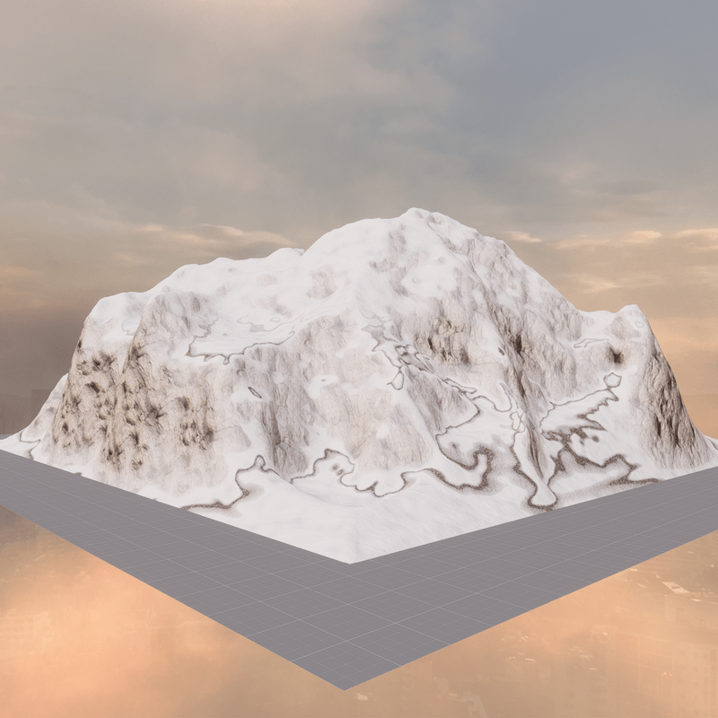 100x100 meters Mt. McKinley terrain to scale 1:100 3 layers + detail shader with snow, rock and moraines. 51.4 MB, 32.8k tris, collision. Editable.