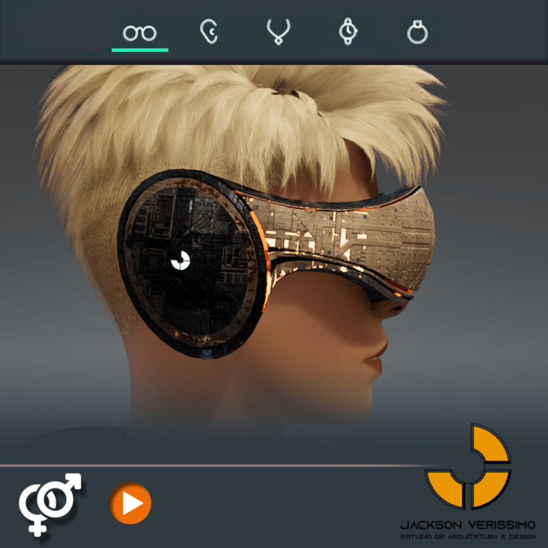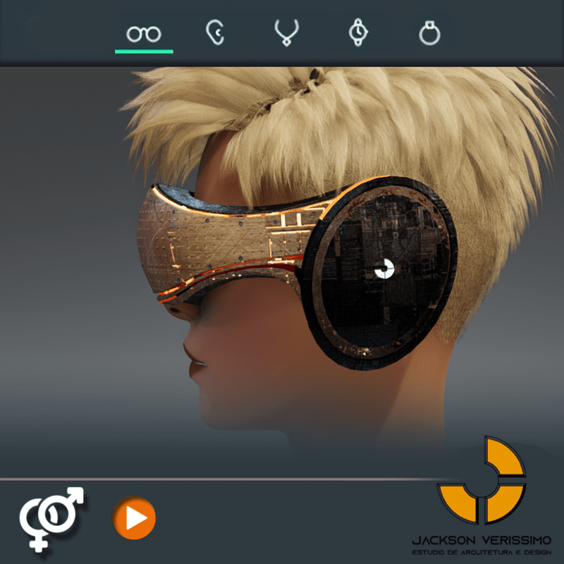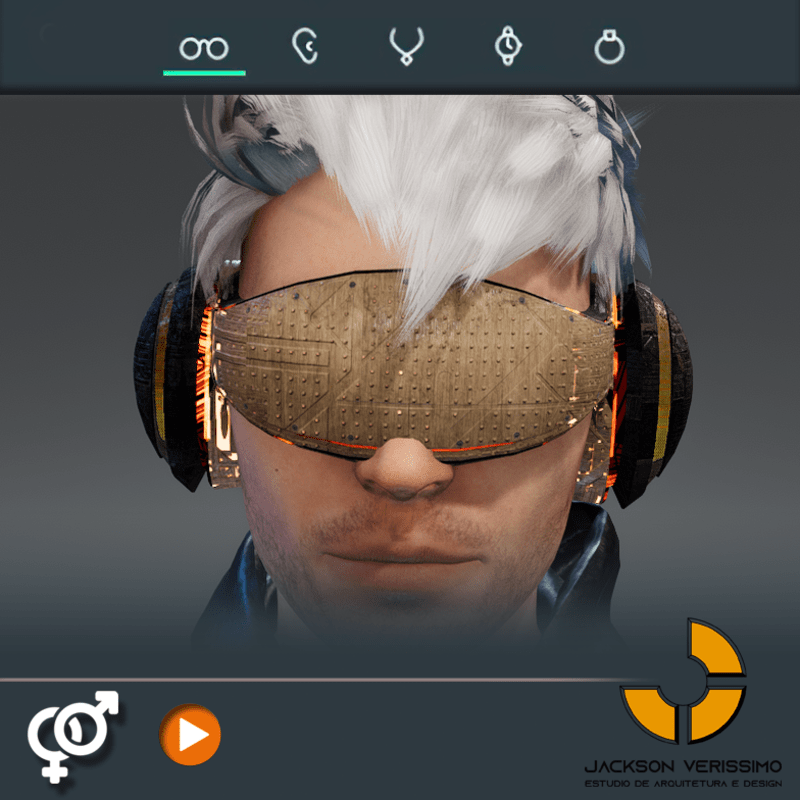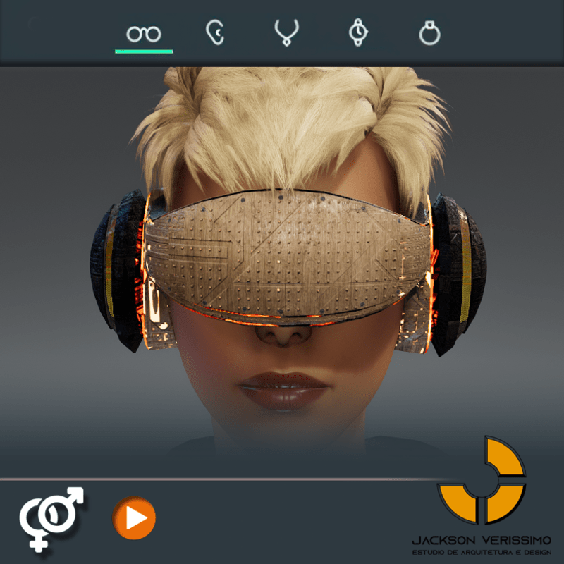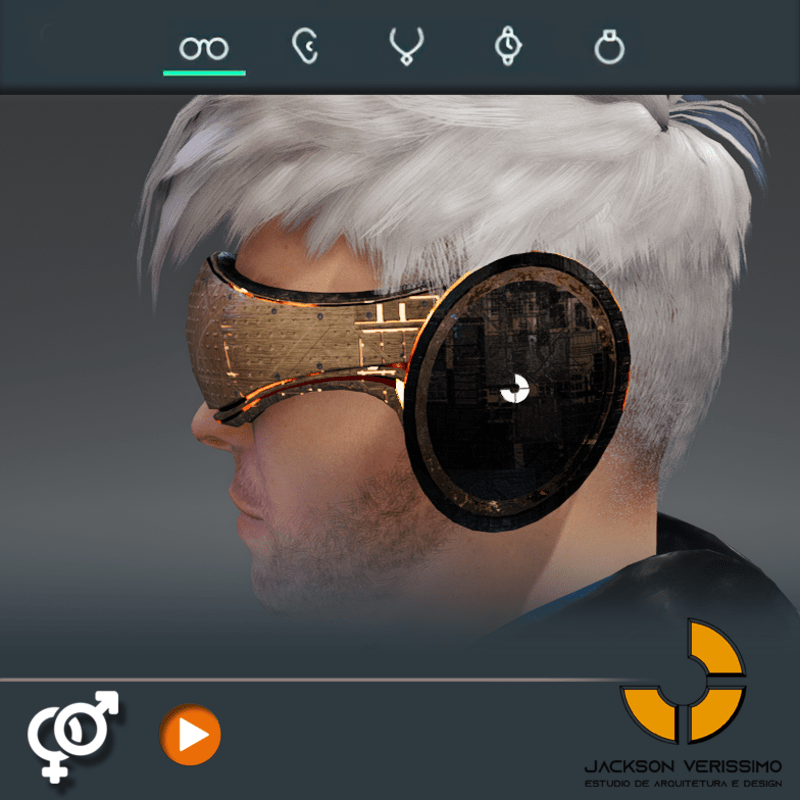 Visionary Design for a VR Headset exclusive for Sansar Metaverse. This Vr Glasses don't mess the Hair of your Avatar. Minimal and Elegant Design. Vr Glasses with HeadPhone. High Resolution PBR Texture and Animated Lights. See the animation: https://gyazo.com/7a3eed3b3d78e9eedbe8cd0fea3a168a Unisex. Match with all humanoids avatars. No need adjustments for Default 2.0 Avatar of Sansar.
