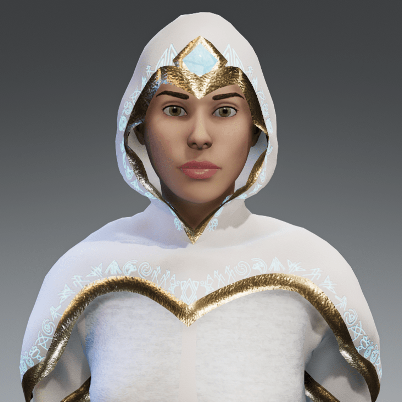 Rich Moonstone coloured robes with golden trims, two large glowing Moonstone gems set in the hood and belt. To top it all off, patiently crafted original runic alphabet lining the hood and sleeves that is luminous and animated with a pulse that fades in and out of visibility. The enchanted gemstones also glow in the same manner as the runes. Fitted to the default female avatar 2.0. A very magical garment perfect for any aspiring wizard or mage, can be used for role-play or just as a fancy outfit for a party.