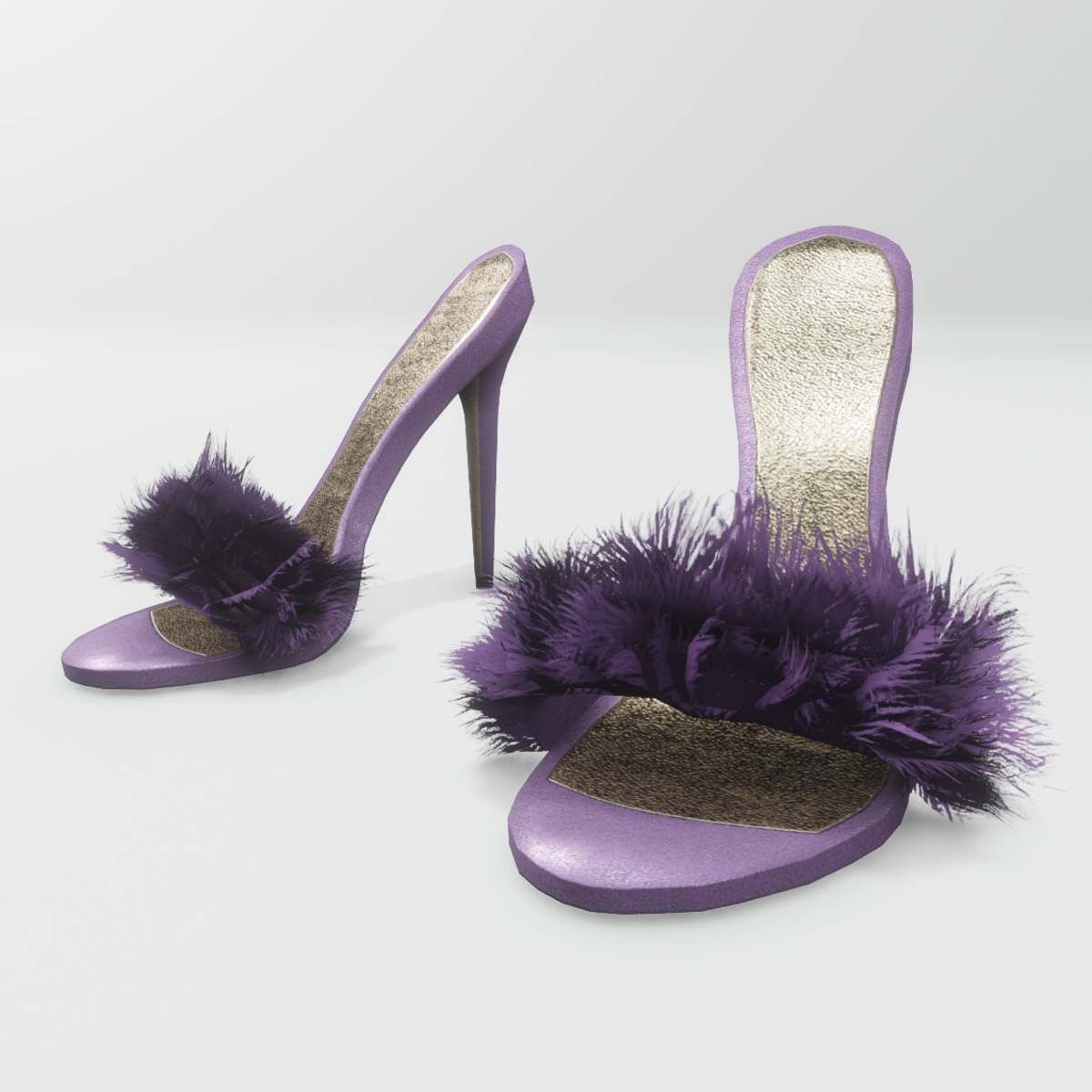 High heeled slippers for avatar Nicci. Stiletto heels, leather material and long decorative fur in purple colour. Get the free demo before purchasing here: https://store.sansar.com/listings/e1107515-f91c-4ab0-95d5-0da9c575bbd2/niccis-fur-slippers----demo