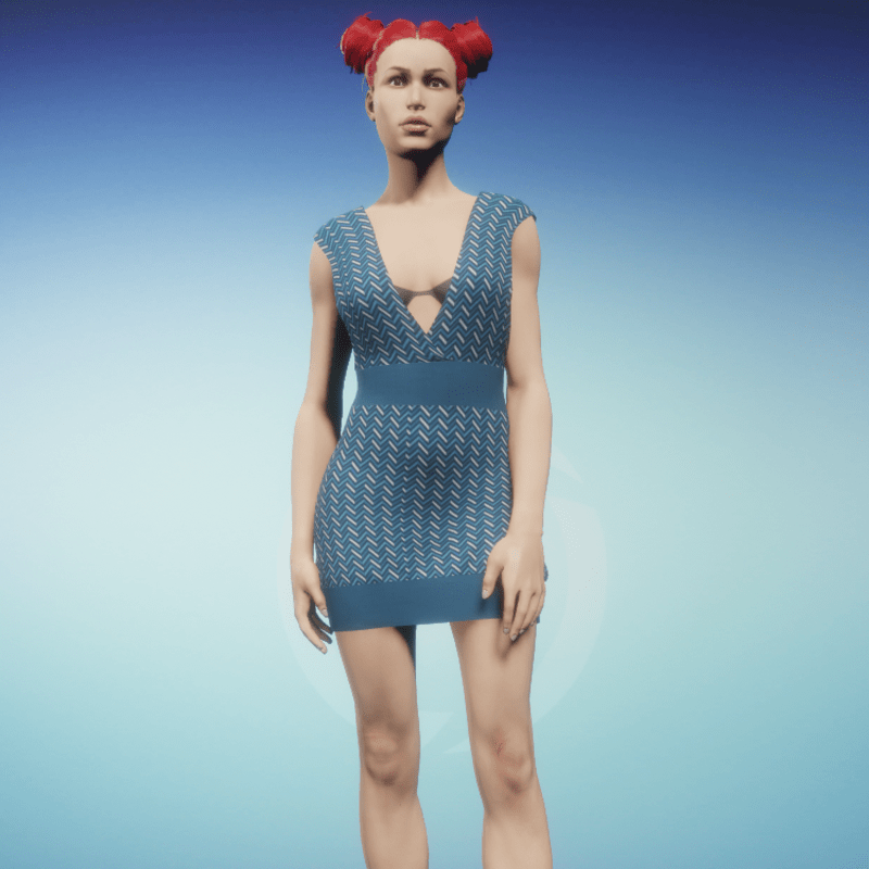 Tube dress with deep neck V with a knit pattern. Made with Marvelous Designer, can be simulated.