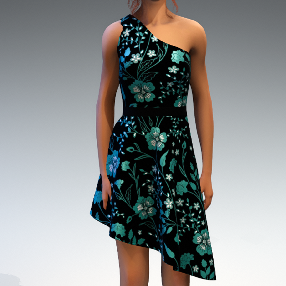 Asymmetric cocktail dress with a shiny floral print. By Sweet Distractions