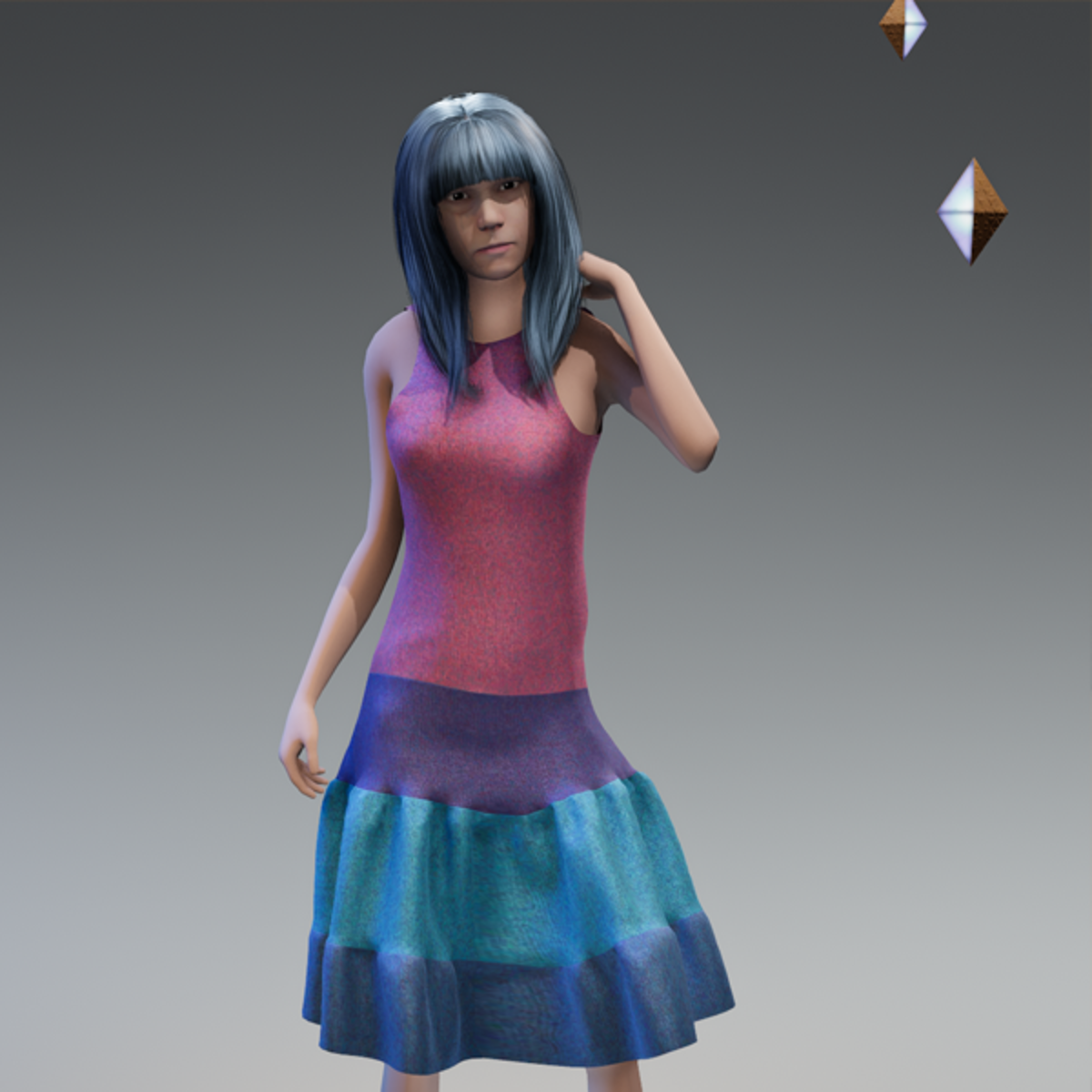 A little longer than usual, but designed to be modest and alluring at the same time. Haltar shaped top and dark pastel colors. Nice.