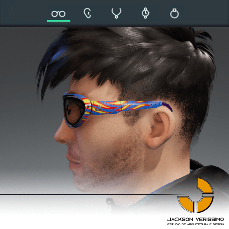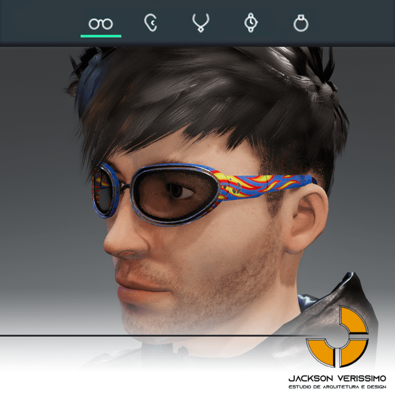 Special design for sunglasses of Aluminium. Original by JackVerissimo. Transparent and Metalic Lens. Frame of Aluminium with flames. Special PBR textures. Unisex. This glasses was designed for Male avatar2.0 but you can use in Female avatars with some adjustments. Match with all humaniods avatars.