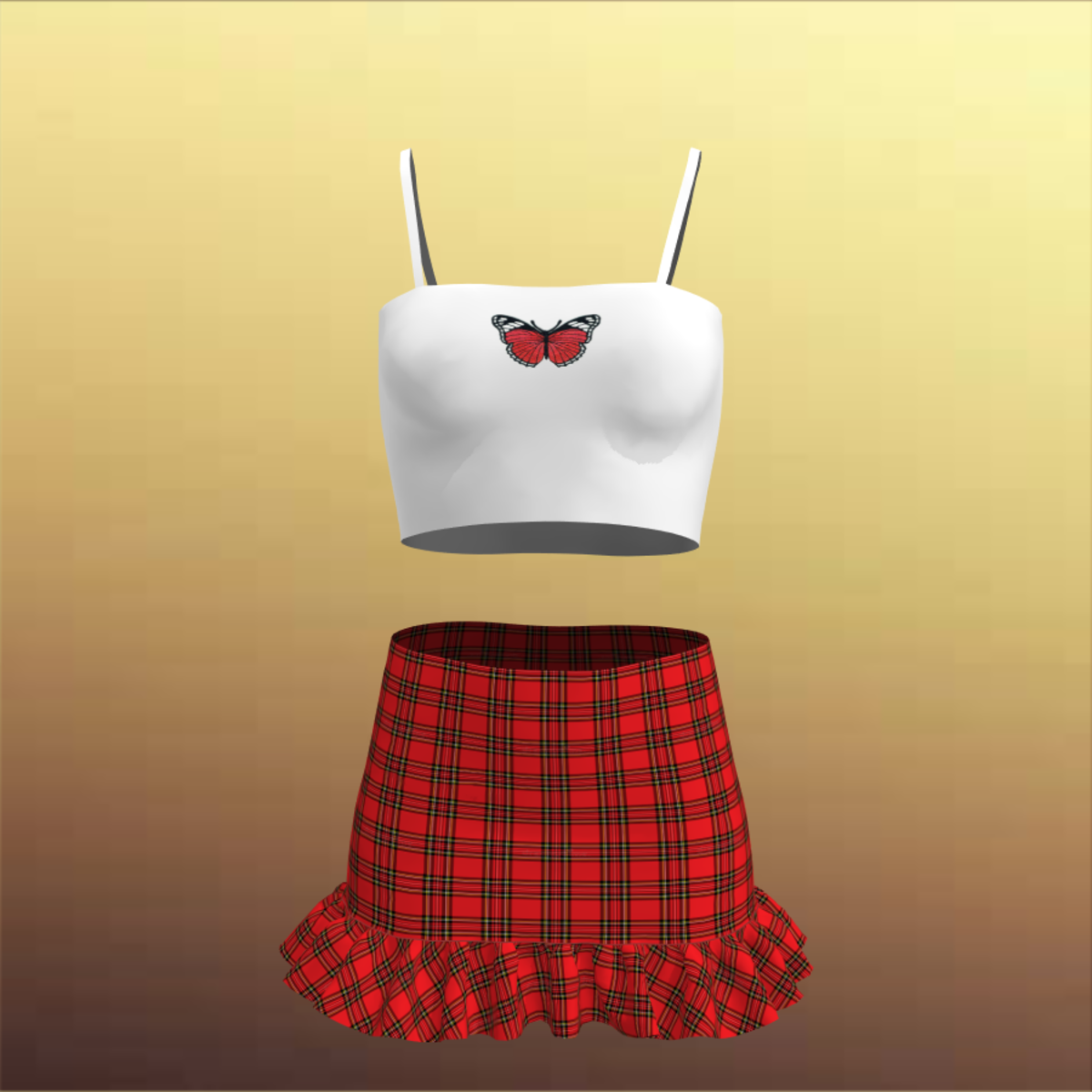 - Butterfly Spaghetti Strap Shirt and Tartan Skirt 04