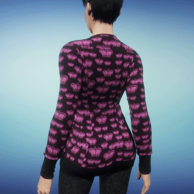 High quality long cardigan with working zipper and crown pattern. Please simulate the clothes before wearing to adjust it optimally.