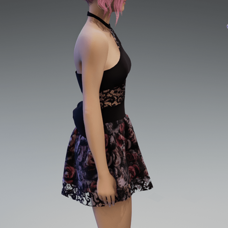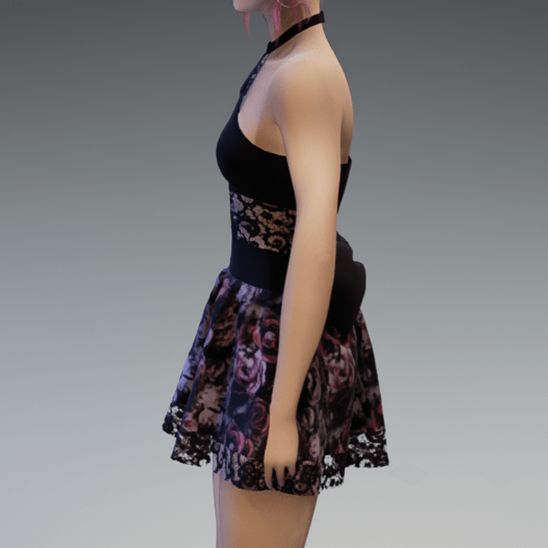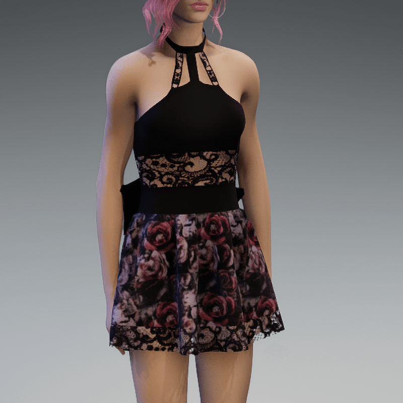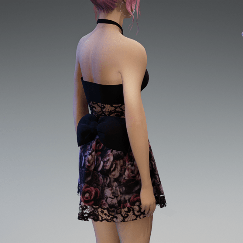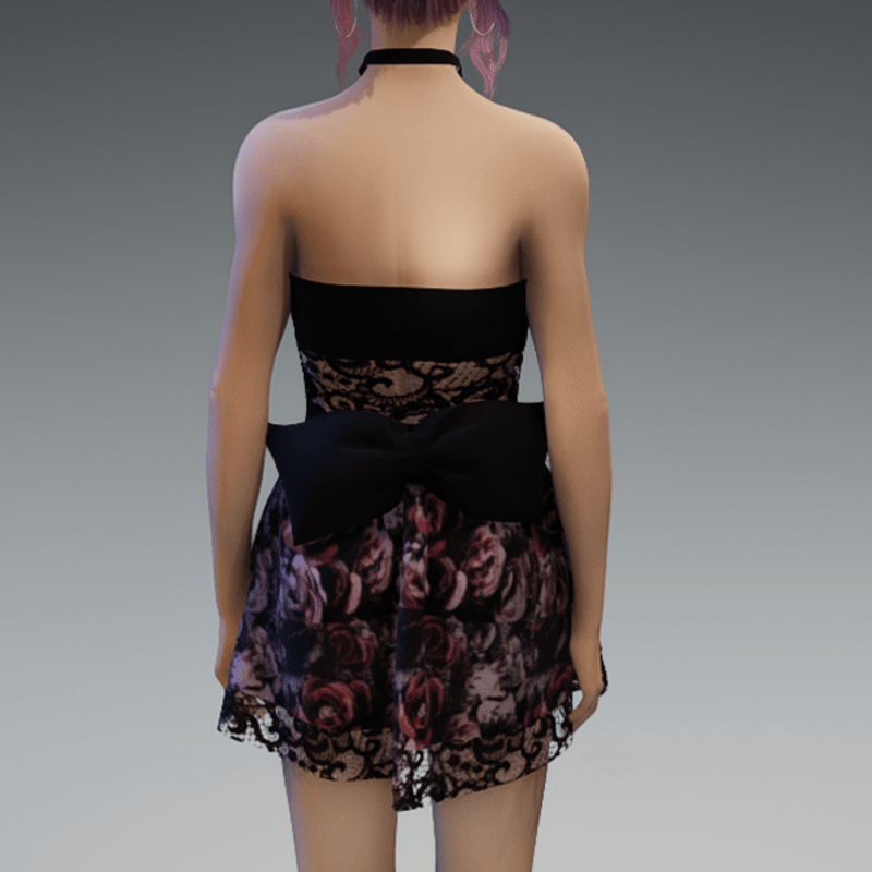 - Cute Partydress with a Bow and Lace and Roses3 Skirt
