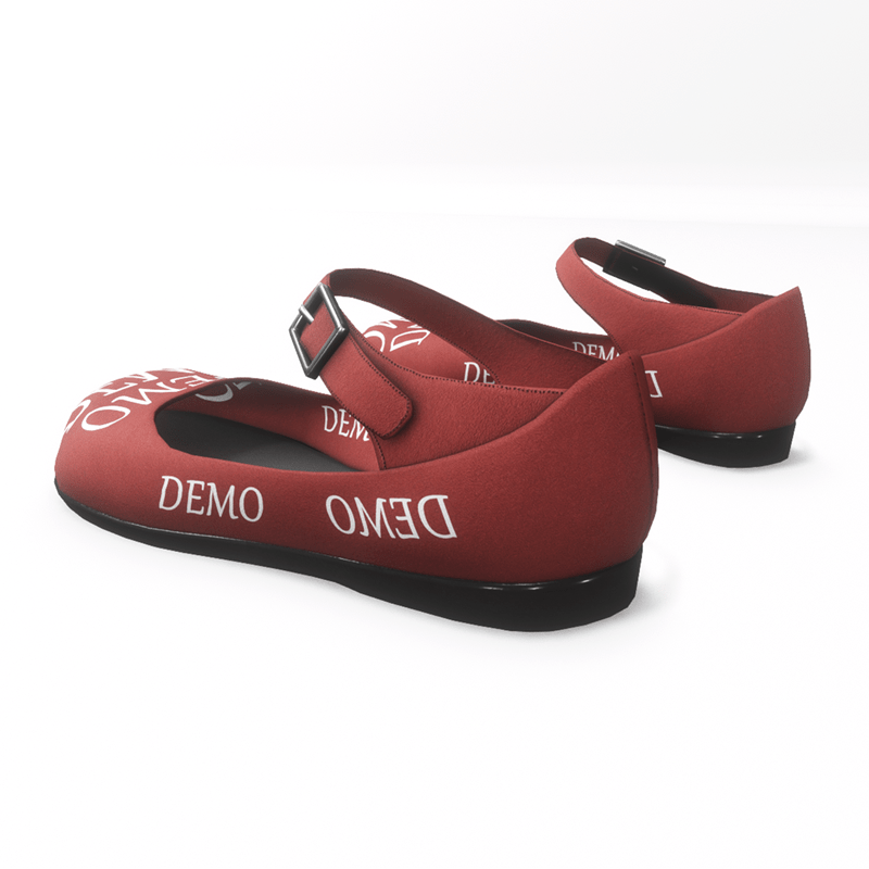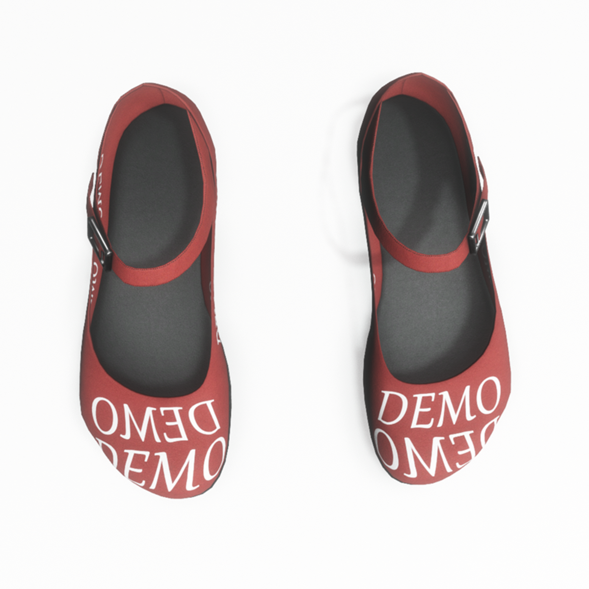 A pair of mary jane style cute flat shoes, with matte leather upper and black rubber outsole. It fastens with a buckle strap. Free demo item.