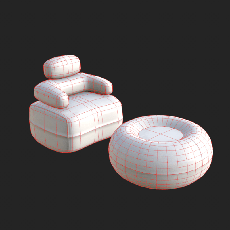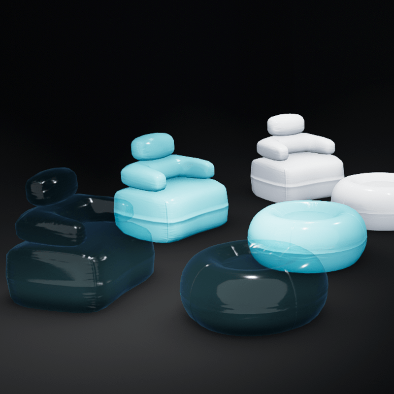 Includes 4 objects - Transparent Version of Chair - Transparent Version of Ottoman - Opaque Version of Chair - Opaque Version of Ottoman Tintable texture design, any color you want. Low poly baked details 2k tris total per pair Sitpoint not added please use a invisible one from store or add your own. Contact "TheNick-1981" through Sansar or Sansar discord if you need re-rigging, a custom design or if there is a problem etc.