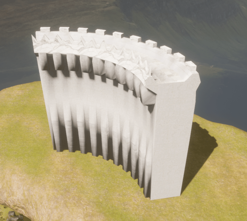 This is a curved modular castle wall. It curves 90degs IN so can be used as a corner to change the direction of your border. It stands 15M tall and has a path to walk on. It uses 1k textures, normal maps and roughness maps. It is designed to work with the other modular parts of the "Robust Castle" group of parts I am making. Tris: 1514 Mats: 4 Textures: 1K Notes: Collision mesh included.