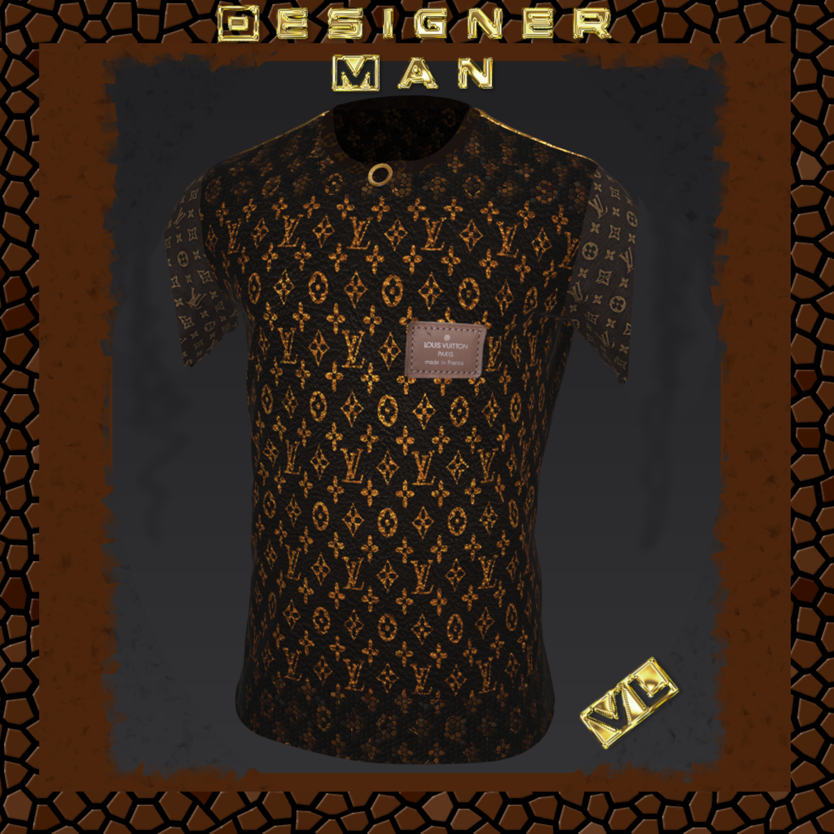 Designer Man, the shirt that tells people, "Lifes to short to wear boring clothes" Have medics on speed dial wearing this because people will be snapping their necks turning to check you out. Accentuated shoulders, slim in the waste, lined with pure crisp gold, this shirt basically tells men and woman of Sansar, you're filthy rich, classy and in the effort of quality clothing what's a few lives of a few animals, because hell YOU deserve it!