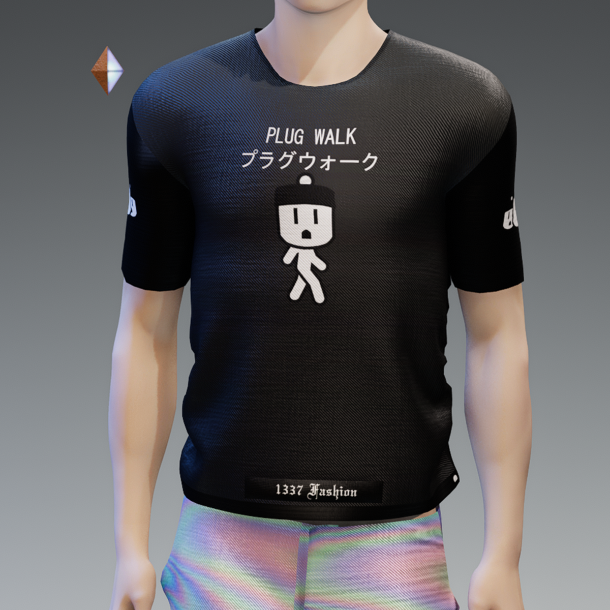 Get to know your new favorite tee in VR! - it's super smooth, super comfortable, and made from a cotton look polyester jersey that won't fade after washing. Only available from 1337 Fashion! Buy a physical garment at: https://1337.fashion/products/mens-plug-walk-t-shirt NOTE: You may need to adjust the tee to get the preferred fit! You can adjust clothing next to the transform tool in the Worn Items Menu.