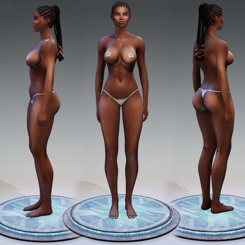 Lara is a beautiful realistic female avatar. She has bigger breasts and is thicker than MiaMilla avatar. Most hair should fit her head, only some long hair covering her breasts may not fit. All flat shoes should fit her foot. Also, all clothes made with Marvelous Designer should fit her body. Hair and clothing are not included. You can buy the original here: https://store.sansar.com/listings/d90844a1-411e-44d0-8540-cb2622cb3b2c/lara-avatar-dark