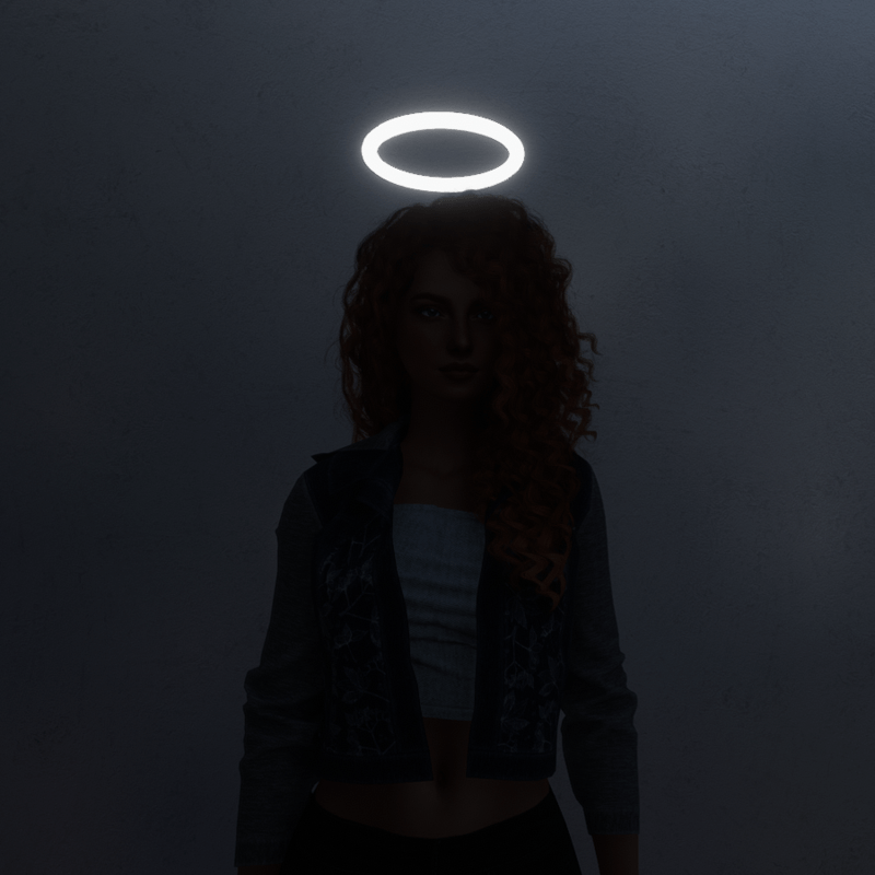 Emissive Halo for Minis Avatar from Silas Merlin, glows in the dark Accessories in male folder, ears tab, you can wear it with your human avatar too, just lift it a bit over your head and resize. The Minis compatible https://store.sansar.com/tags/mmm