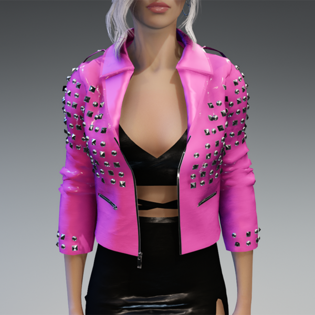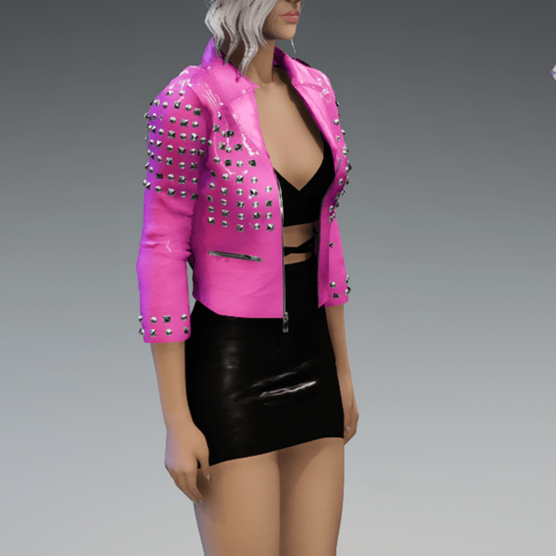 This leather jacket comes with a lot of rivets. You can also find the dress in my store. And please remember to remove your hair before adjusting the jacket. otherwise there will be problems with the collar. Enjoy! <3