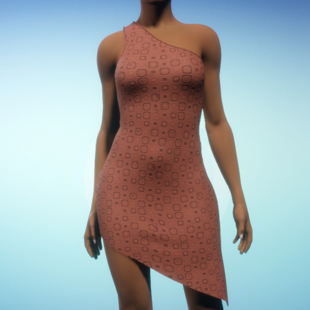 A one-shouldered, form-fitting asymmetric dress that is cut higher on one leg. By Sweet Distractions