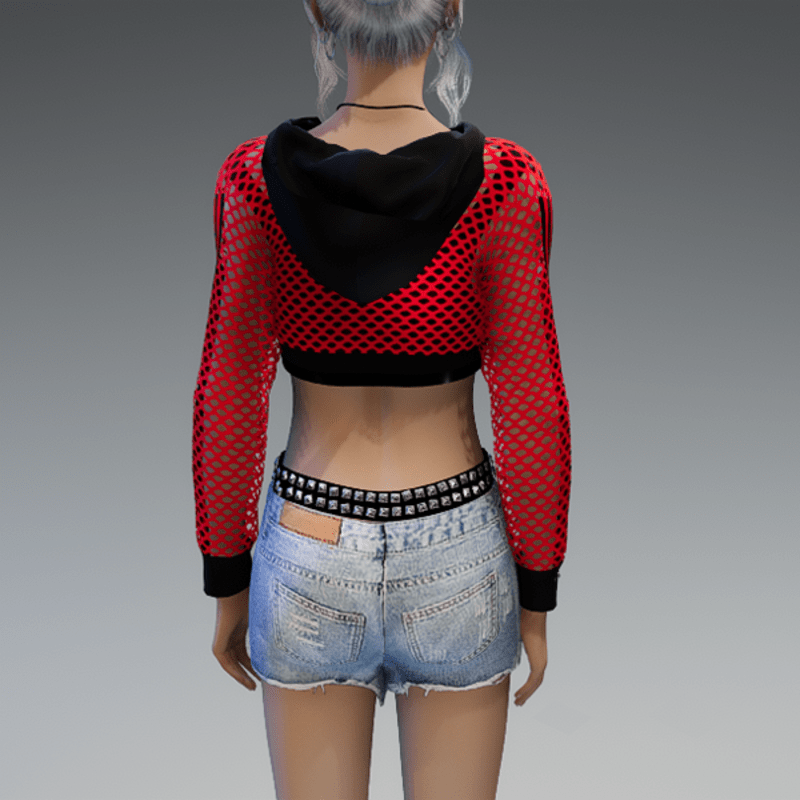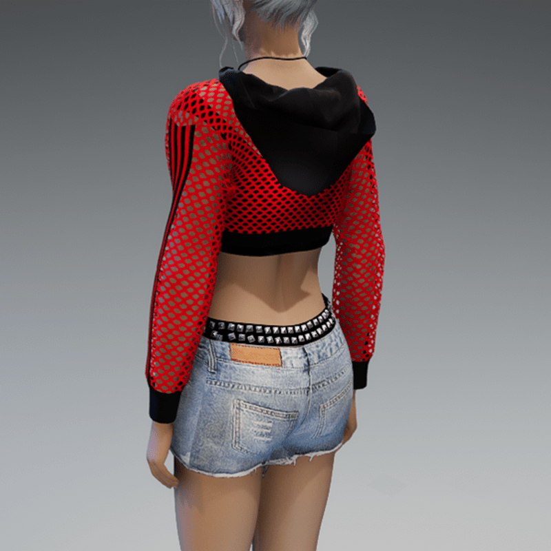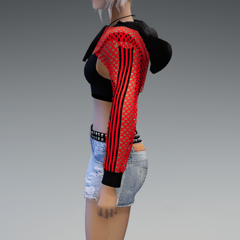Mesh Hoodie + Top Red & Black Stripes