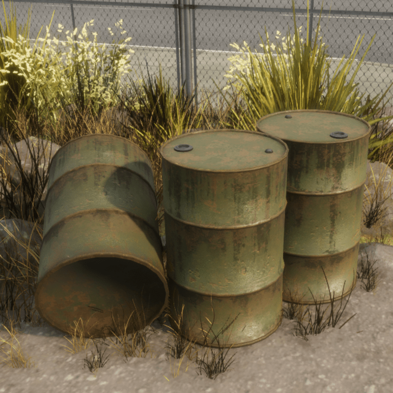 Rusty Green Weathered Oil Drum / Metal Barrel. Low poly FBX model with collision mesh and 1K PBR texturing.