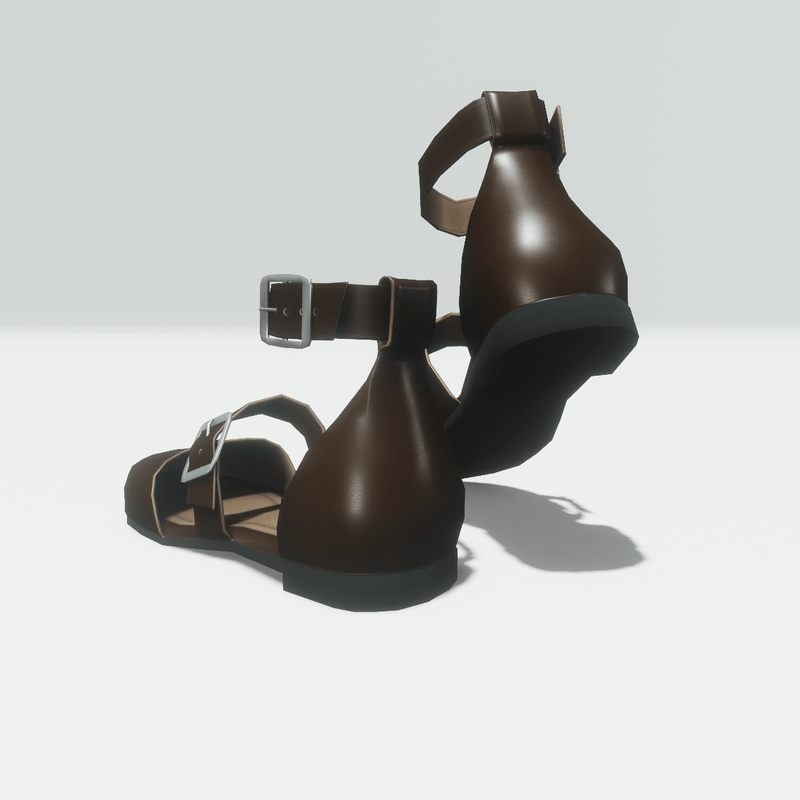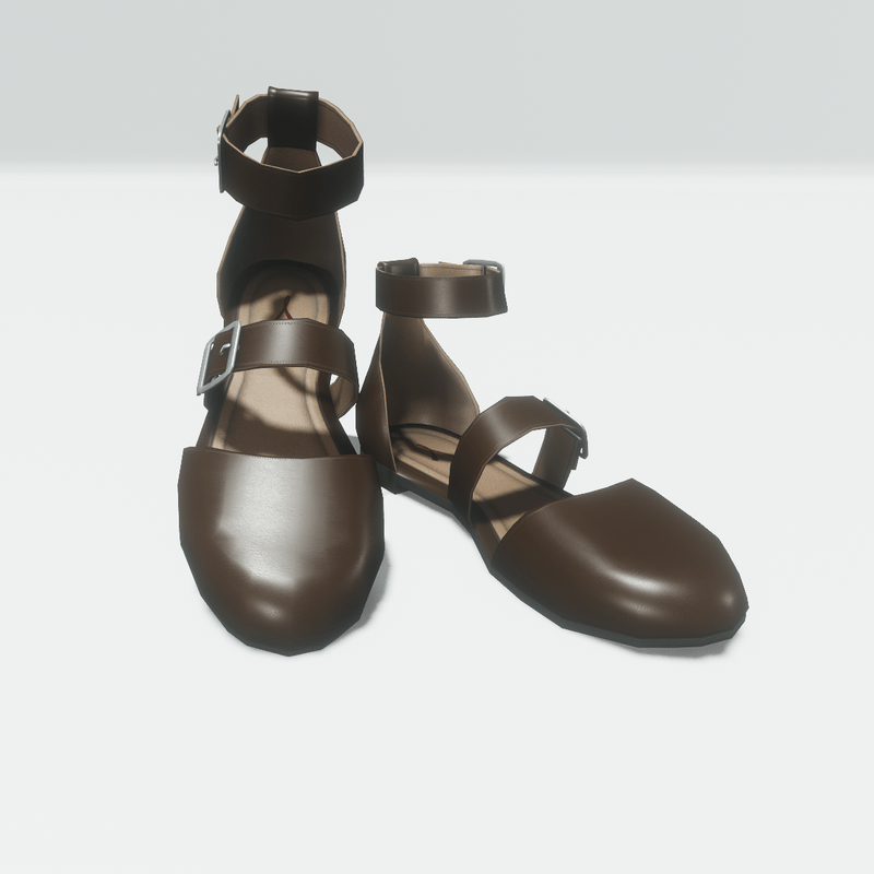 Flat woman's shoes with brown leather outside and light brown leather lining inside. The toe is almond shaped. The shoe have two metallic buckle closures, one on the foot and one on the ankle strap. Before purchasing get the free demo item to check the fit here: https://store.sansar.com/listings/0ddf0fb3-e806-4914-936b-19c1b9e47cda/ankle-buckle-flat-shoes---demo