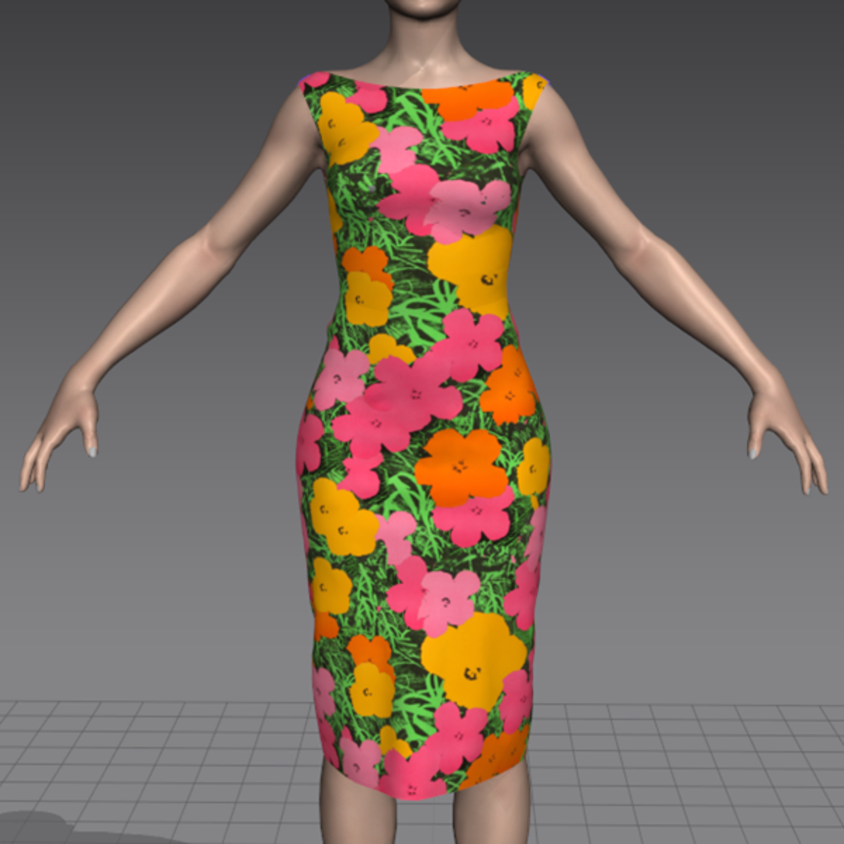 A lightweight but form-fitting cotton day shift, sleeveless, with a low boat-neck and skirt length just below the knee. Featuring a mod, colorful 1960's floral design. Very "Betty Draper" from MAD MEN.