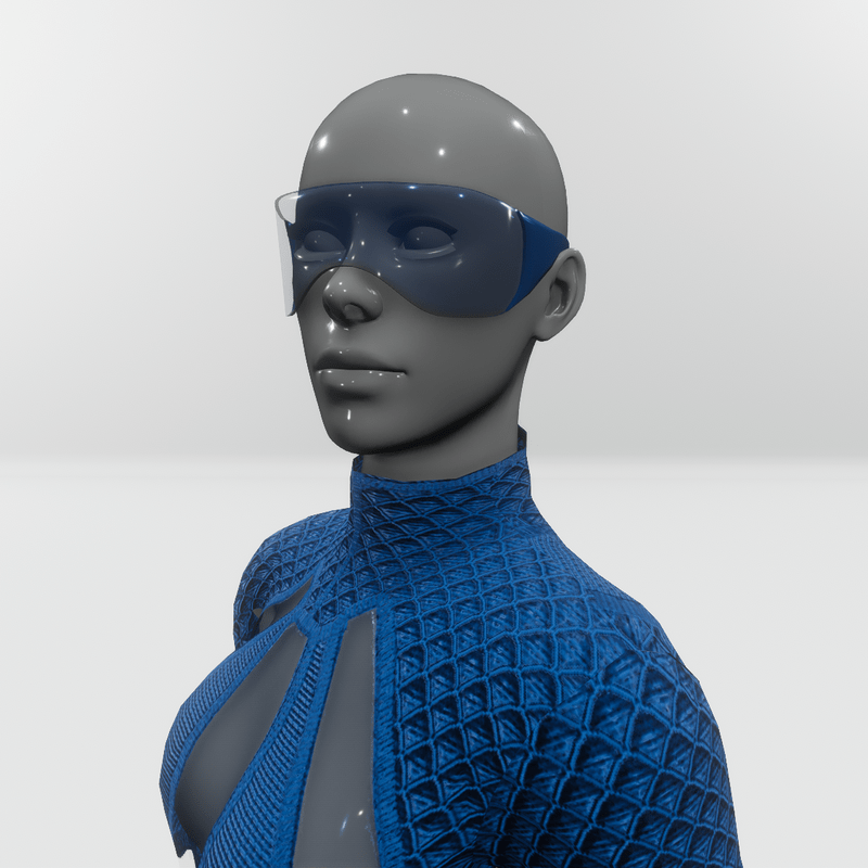 Futuristic female sunglasses, part of the "Baryt set" in blue color. Get the free demo item to check fit and style before purchasing here: https://store.sansar.com/listings/aca6bbb4-c1e2-45c3-9a6b-fda56605c4db/baryt-sunglasses---demo