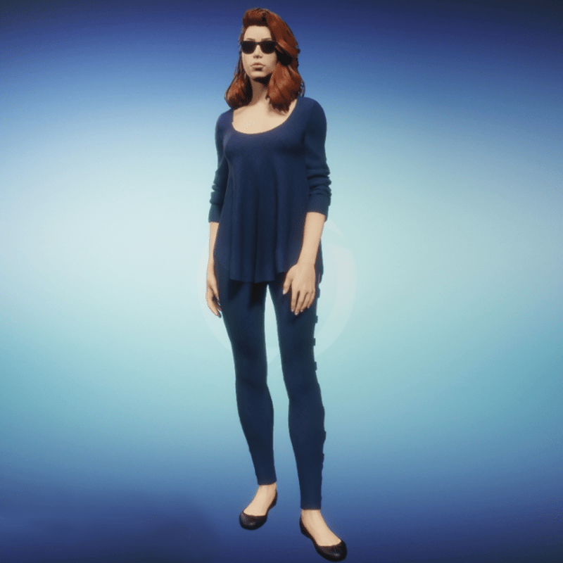 Normal waist leggings with outer side straps. Inner thigh panel and straps are of sculpted knit. Matches the JRNY - Leggings Tops. Remember to use animate cloth to make the garment fill in. You may also tug and pull at the garment while in animate cloth mode to achieve your own unique style.